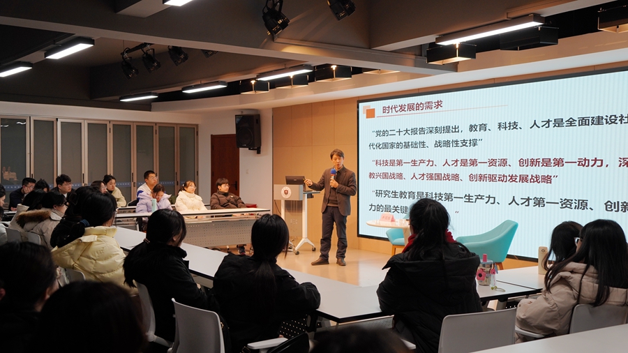 活动中,开国银结合个人求学、科研经历,以自身从一名师范生到博士生导师的成长经历,围绕学术道路选择、科研思维培养、跨学科创新等议题展开交流。开国银表示,母校老师不仅传授了专业知识,更以严谨的治学态度和高尚的人格魅力深深影响了他,本科阶段扎实的生物学基础训练为其后续科研创新奠定了坚实基础。开国银勉励青年学子要勤奋刻苦、努力拼搏,丰富知识储备,练就过硬本领;要培养科研意识,明确科研目标,积累科研经验,勤于思考与交流;要不怕困难、攻坚克难,为了理想能坚持、不懈怠,努力奋斗创造美好生活。在互动交流环节,开国银就大学生如何备战“挑战杯”竞赛等问题进行详细解答。