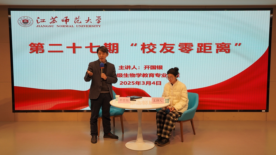 3月4日下午,第二十七期“校友零距离”在泉山校区举行。本期活动特邀国家万人计划领军人才、浙江中医药大学科研部副部长、二级教授、博士生导师、(中国)官方网站浙江校友会副会长、1995级生物学教育专业校友开国银教授重返母校,以“从学生到导师——我的成长之路”为主题,通过沙龙对话形式,为在校学生呈现了一场关于科研成长与育人智慧的深度分享。