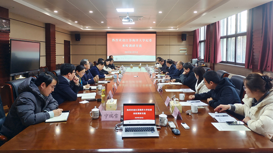 3月5日,江苏海洋大学纪委来(中国)官方网站调研交流。校纪委书记、派驻监察专员闾浩参加交流座谈会,党委巡察办公室负责人和校纪委全体人员参加会议。