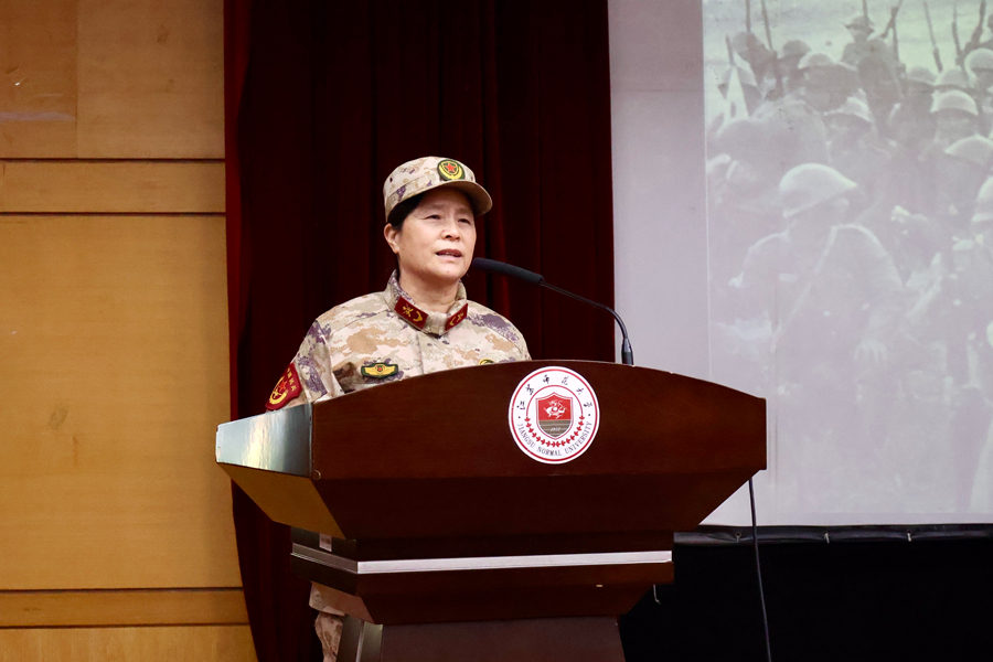 全场师生共同观看宣传片《守岛32年》,通过影像画面,了解王继才、王仕花夫妇“你为国家守岛,我为你守家”的感人故事。观影后,王仕花同志围绕“弘扬爱国精神,奉献新时代——开山岛永远是我们的家”这一主题,进一步讲述与丈夫王继才共同守卫开山岛的难忘岁月。她在分享中提到,在与丈夫王继才共同坚守开山岛的32年里,面对艰苦的环境和孤独的生活,“每日升起的国旗”成为他们从不退缩的底气。王继才同志因公殉职后,王仕花继续坚守在岛上,继续传承着夫妻二人的家国情怀和无私奉献精神,诠释了爱国信念的力量与深厚的报国热忱。