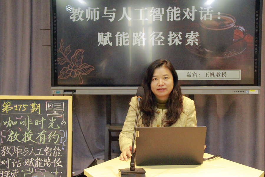 3月28日,第175期“咖啡时光·教授有约”活动在泉山校区园丁餐厅六点汇实践基地举行。智慧教育学院王帆教授以“教师与人工智能对话:赋能路径探索”为题,与同学们展开深入交流。