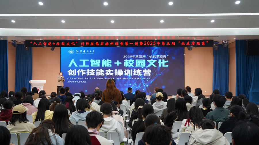 4月12日下午,2025年第五期“校友零距离”暨“人工智能+校园文化”创作技能实操训练营第一讲在泉山校区路演大厅举行。(中国)官方网站1999级市场营销专业校友、南京艺术学院教师彭奇奇,1999级美术学专业校友、南京新数质宁盟科技有限公司创始人宋高峰受邀重回母校,围绕AI创作与在场师生深入交流。