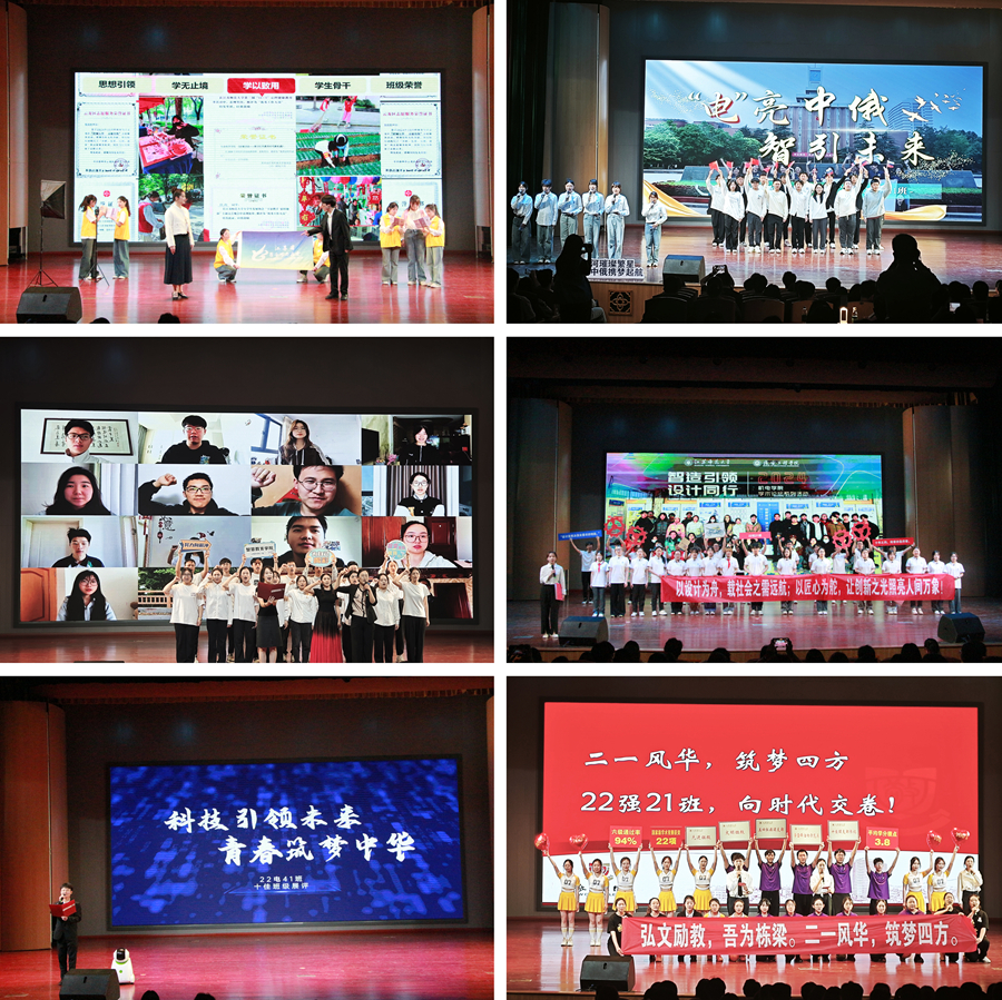 展评现场,从全校565个班级脱颖而出入围终评的23个候选班级围绕“班风正、学风好、学子优、班委强、荣誉多”等五个方面,以主题汇报、情景剧、朗诵和歌舞表演等多种表现形式展示了班级建设的突出成绩和特色亮点,充分展现了(中国)官方网站学子的蓬勃朝气和积极向上的精神风貌,也彰显了各学院在班级建设和学生教育培养方面的创新举措与显著成效。