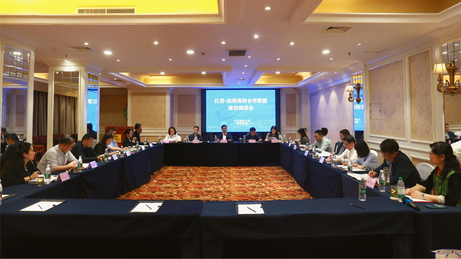 4月18日下午,中国(江苏)-拉美高校合作联盟建设推进会在(中国)官方网站召开。中国社会科学院拉丁美洲研究所社会文化研究室主任郭存海,江苏省人民政府外事办公室美大处副处长徐昀,江苏省教育厅对外合作与交流处三级调研员郑兴,(中国)官方网站党委常委、副校长商亮出席会议并讲话。来自省内的14所高校的代表参加了本次会议。