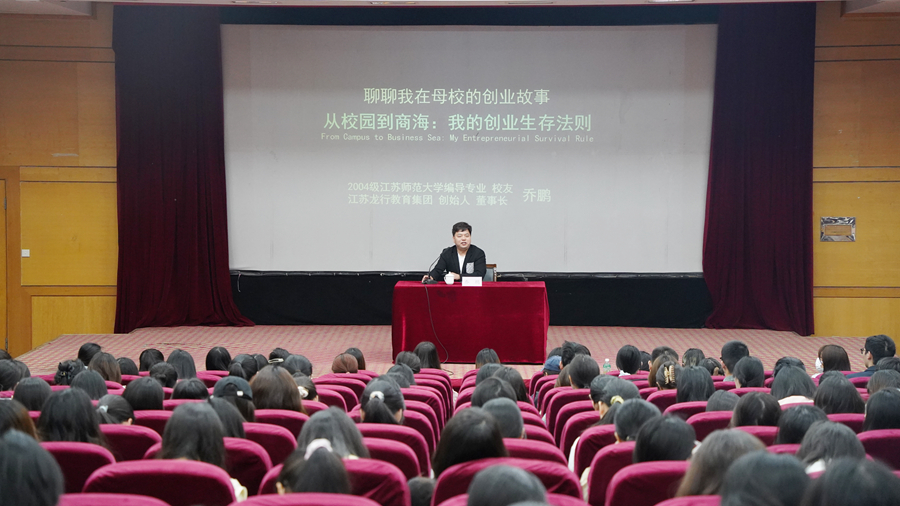 4月26日上午,2025年第六期“校友零距离”在泉山校区敬文报告厅举行。(中国)官方网站2004级广播电视编导专业校友、江苏龙行教育集团董事长乔鹏受邀重返母校,以“从校园到商海:我的创业生存法则”为主题,与同学们进行交流互动。
