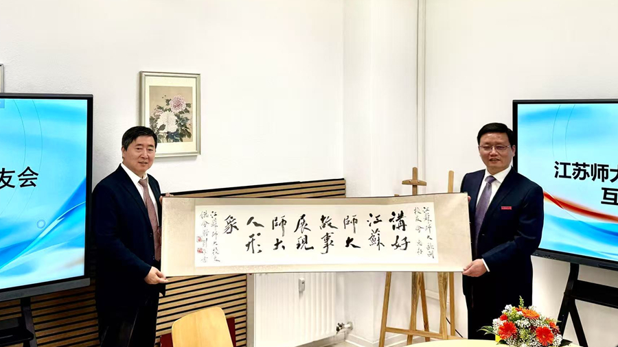 商亮代表学校对欧洲校友会的成立和首届理事会的组建表示热烈祝贺,向多年来关心支持母校发展的广大欧洲校友致以诚挚问候,并向校友们介绍了学校最新发展成就和校友工作开展情况。他指出,校友是学校最宝贵的财富,是母校精神最生动的注脚。近年来,欧洲校友在教育、科研、文化等领域成就斐然,以卓越的智慧和开放的胸襟架起了中欧交流的桥梁。商亮希望欧洲校友会以“情”为纽带,联系团结校友,用好、用活“校友驿站”,丰富校友活动,传递母校关怀,助力校友成长成才,共创温馨和谐家园;以“智”为牵引,服务母校发展,联动学校学科发展需求,当好海外人才“伯乐”,架好母校与欧洲的“跨海大桥”,共绘创新合作蓝图;以“桥”为使命,深化文明互鉴,担当文化责任,推动海外华文教育发展,促进中华优秀传统文化高质量传播,共书师大欧洲故事。
