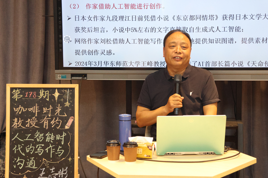 5月29日下午,第178期“咖啡时光·教授有约”活动在泉山校区三食堂六点汇举行。文学院王志彬教授就“人工智能时代的写作与沟通”这一主题与在场同学进行交流。