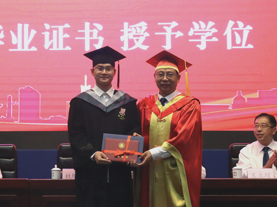 杜增吉代表学校向圆满完成学业的151名毕业生表示祝贺。他希望毕业生们:一是志存高远、心怀家国,做民族复兴的追梦人。要永葆“国之所需即我所向”的赤子之心,将“小我”融入“大我”,将个人选择与国家命运紧密相连,矢志做投身祖国事业的奋斗者和实现民族复兴的追梦人;二是勇立潮头、追求卓越,做创新发展的排头兵。要以舍我其谁的使命意识勇攀科技高峰,在实现高水平科技自立自强的征程中展现青春风采、贡献青春力量;三是锤炼品格、永不放弃,做百折不挠的攀登者。要保持“千磨万击还坚劲”的韧劲,在科研攻关中耐得住寂寞,在创业道路上经得起风浪。要永远以攀登者的坚韧姿态行稳致远、铸就辉煌!