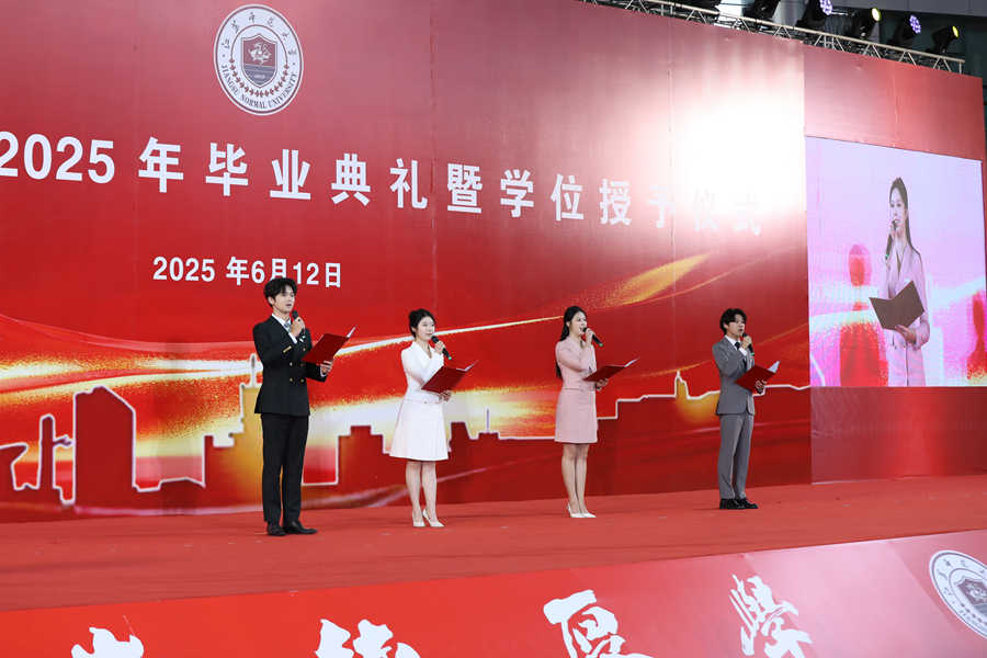 一纸证书,浸润着青春汗水;一份传承,凝聚着师长深情。接过证书,毕业生们即将怀揣梦想奔赴未来。在学生代表带来朗诵节目《筑梦苏师,奔赴山海》中,典礼开启了第二篇章——《师恩如光・行舟引航》。