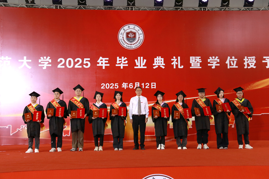 在这重要的四年大学时光中,同学们始终践行“崇德厚学,励志敏行”的校训,砥砺奋进、笃行不怠,书写了青春的奋进之笔。典礼上,副校长朱国军宣读了“2025届优秀本科毕业生”表彰决定,校党委书记芮国强为2025年优秀本科毕业生代表颁发荣誉证书并合影留念。