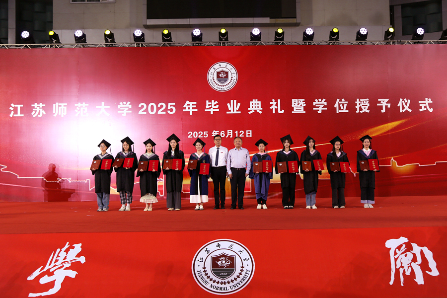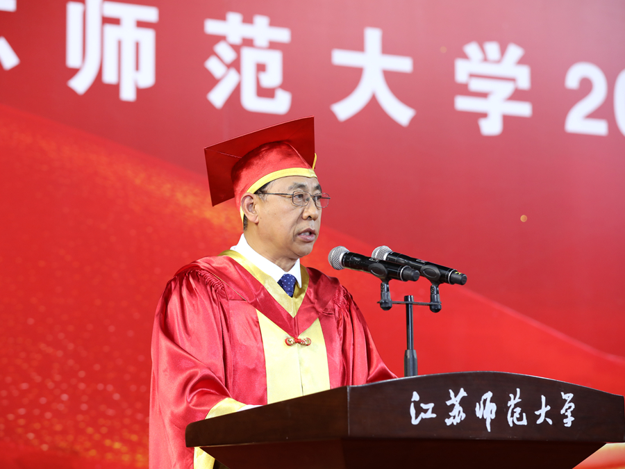 春秋往复,文脉赓续,一年又一年苏师学子在知识的沃土中扎根成长,以青春之姿奔赴壮阔山海。副校长、校学位评定委员会副主席商亮宣读了《本科生学士学位授予决定》。校长杜增吉为毕业生代表授予学位证书并拨穗。各学院院长代表毕业生上台领取毕业证书和学位证书。