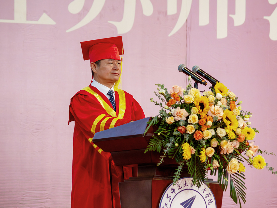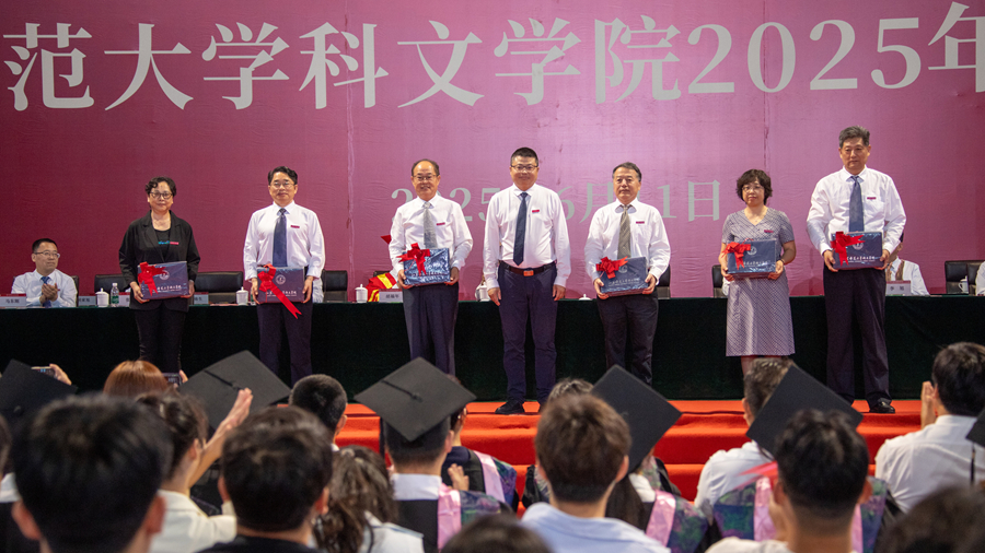 校长杜增吉以《青春逐梦新征程 勇担使命向未来》为题,深情寄语。他对科文学院2025届全体毕业生提出三点希望,一是希望大家以坚实的臂膀扛起历史使命,用奉献精神书写新时代青年的青春担当;二是希望大家以坚定的信念行稳致远,在机遇中勇闯敢拼,于挑战前从容应对,在广阔天地间施展才华,实现梦想;三是希望大家铭记“国之所需,吾志所向”的承诺,永葆“涓流虽寡,浸成江河”的韧劲,让青春在实现国家繁荣、民族复兴的征途中绽放绚丽光彩。他最后表示,近年来,科文学院锚定“省内一流、国内知名应用型大学”建设目标,不断提升办学实力和核心竞争力,取得了显著成效,未来,学校将一如既往地支持科文学院事业发展,关心、关注科文学子成长成才,永远做广大师生校友的坚强后盾。