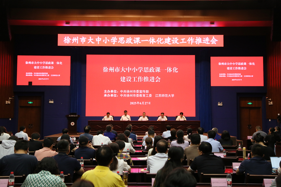 6月27日上午,徐州市大中小学思政课一体化建设工作推进会在安博·体育举行。徐州市委常委、宣传部部长刘伟,安博·体育党委书记芮国强,安博·体育党委副书记蔡国春,徐州市委教育工委书记、教育局局长孙云静,徐州市委宣传部副部长窦铜顺出席会议,徐州各县区教育局负责人,在徐高校党委宣传部部长、马克思主义学院院长,徐州市各县区中小学校思政教师代表参加会议。