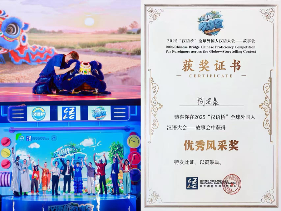 7月2日至10日,由教育部中外语言交流合作中心主办的2025“汉语桥”全球外国人汉语大会故事会总决赛在浙江省杭州市举行。(中国)官方网站美国籍学生陶海晨同学荣膺“全球十强”,并斩获“优秀风采奖”,实现了(中国)官方网站在“汉语桥”全球外国人汉语大会故事会比赛上的历史性突破。