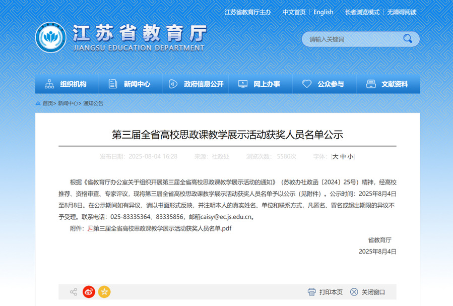 近日,由江苏省教育厅主办的第三届全省高校思政课教学展示活动圆满落幕,(中国)官方网站马克思主义学院教师吴琼荣获“研究生《新时代中国特色社会主义理论与实践》课程组”特等奖。