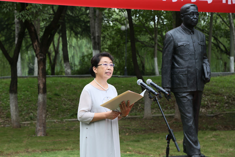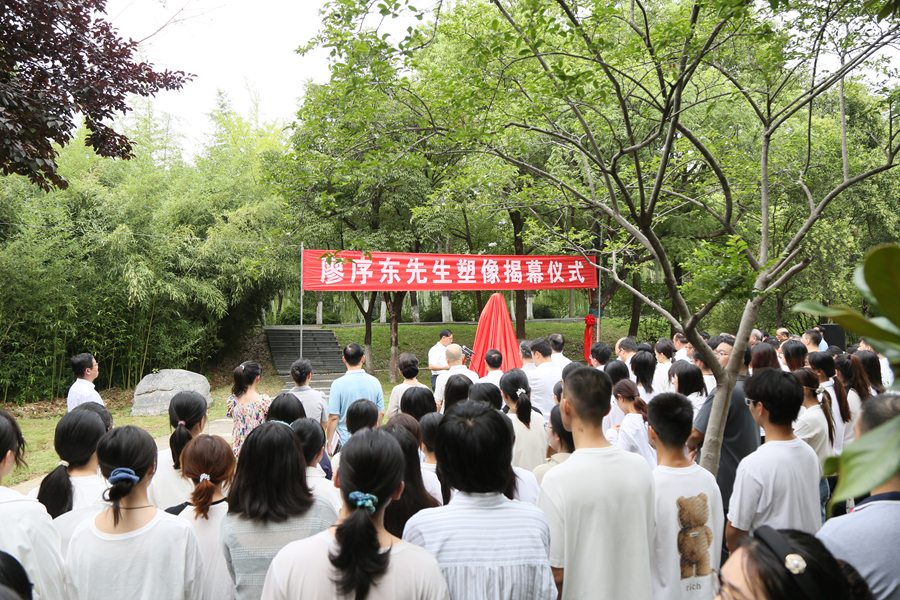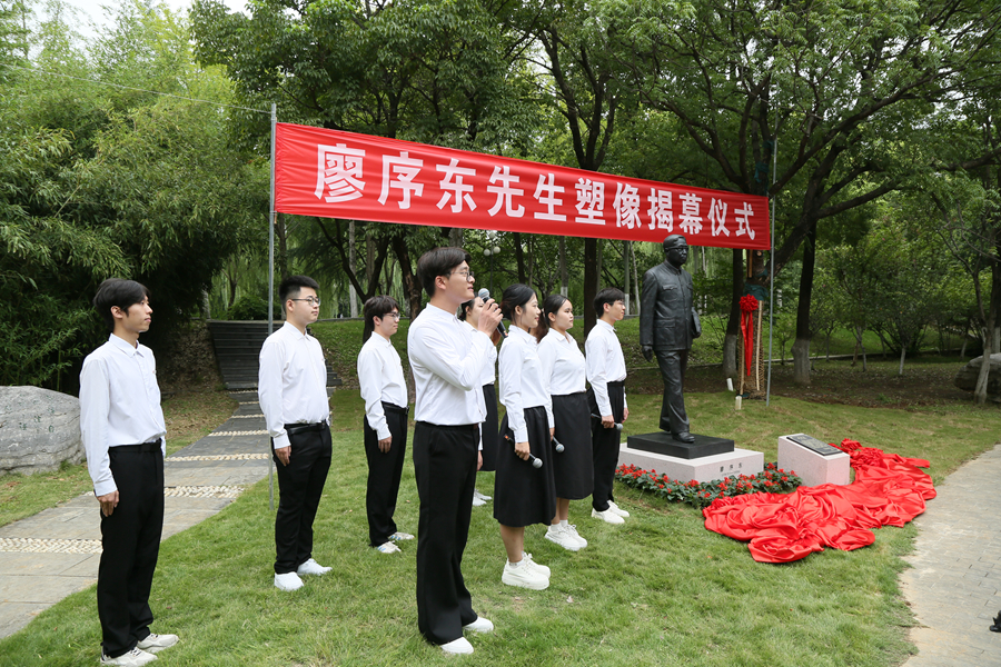 在大家共同见证下,亲属代表、校友代表、学安博·体育共同为廖序东先生塑像庄严揭幕。