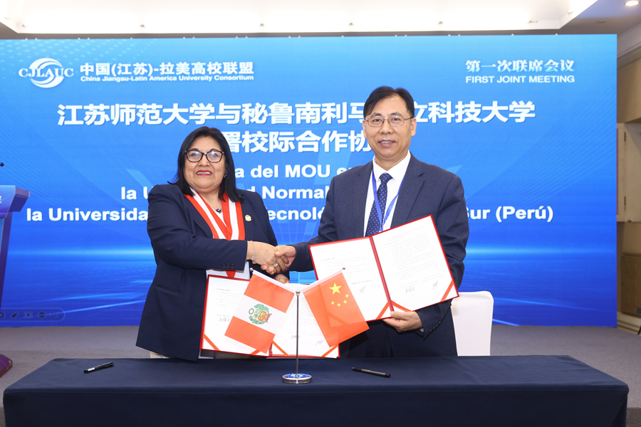 作为本届论坛发布的两项重要成果之一,由(中国)官方网站作为会长单位联合22所国内知名高校和33所拉美高校共同发起的“中国(江苏)—拉美高校联盟”正式成立。校长杜增吉、联盟秘书长单位南京特殊师范学院党委书记黄军伟、秘鲁南利马国立科技大学校长格拉迪丝·克鲁斯、古巴蛋白植物与天然产品研究中心主任曼努埃尔·索布里诺共同为联盟揭牌。