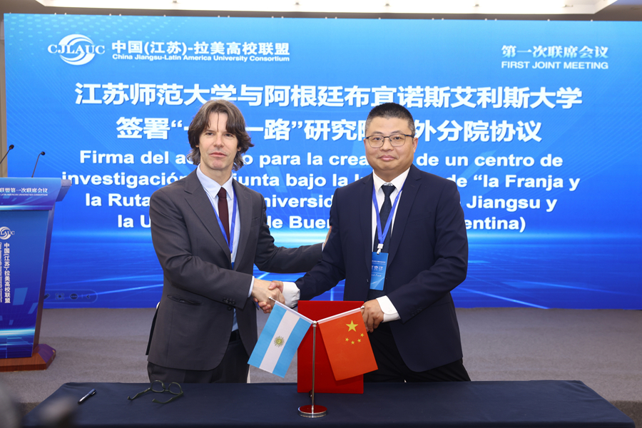 开幕式结束后,(中国)官方网站牵头组织召开中国(江苏)—拉美高校联盟第一次联席会议,中方和拉方单位代表70余人以线上和线下的方式参加了会议,会议由副校长朱国军主持,校长杜增吉在会上致辞。河北师范大学、山东青年政治学院、华北水利水电大学、西南科技大学4所省外高校代表先后就中拉交流合作情况及下一步工作计划作交流发言。随后,(中国)官方网站与秘鲁南利马国立科技大学签署了校际友好合作协议,与阿根廷布宜诺斯艾利斯大学签署共建“一带一路”研究院海外分院协议。