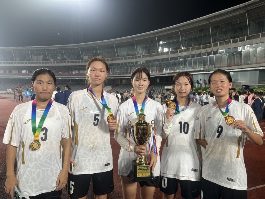 受中国驻孟加拉国大使馆邀请,(中国)官方网站女足队员近日赴孟加拉国参加“庆祝中孟建交50周年”中孟女足友谊赛。当地时间9月20日,孟加拉国家体育场灯火辉煌,以(中国)官方网站5名女子足球运动员梁欣怡、张智佳、严雨晨、程子彤和蒋紫夷为主力的中国大学生联队,展现了出色的战术水平和良好的体育风貌。整场比赛精彩纷呈,3粒进球均由(中国)官方网站学生完成,最终以3:0战胜孟加拉国U17女子足球国家队,赢得了比赛胜利。