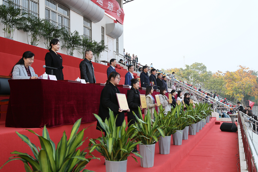 校长杜增吉在开幕式上讲话。他指出,近年来学校深化体育教学改革,大力发展特色体育运动项目,持续推动体育教学与实践深度融合,主动对接社会需求,在竞技体育与群众体育协同发展领域实现新突破。一年一度的田径运动会是(中国)官方网站践行以体育人、以体铸魂理念,实现以体育智、以体育心目标的重要组成部分,希望全体师生秉持“更快、更高、更强、更团结”的体育精神,发扬顽强拼搏、团结协作的运动风尚,把体育竞技中激发的昂扬斗志转化为干事创业、求知奋进的强大动力,为推进学校事业高质量发展作出新的更大贡献。