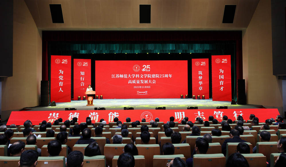 11月8日,科文学院建院25周年高质量发展大会在潘安湖校区举行。徐州市委常委、宣传部部长刘伟,教育部政策法规司原一级巡视员、雄安新区教育发展基金会理事长王家勤,校长杜增吉,徐州市贾汪区委副书记、区长翁乐天,副校长、科文学院理事长朱国军出席大会,省内高校、地方政府部门、企事业单位、合作机构等单位的领导、嘉宾,以及科文学院老领导、校友代表、师生代表共计700余人参加大会。