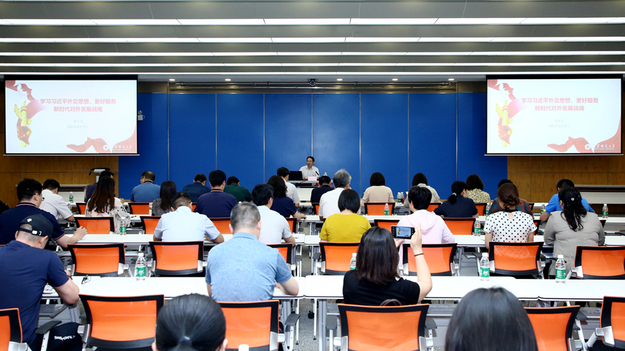 周汝光从习近平外交思想的形成脉络、总体框架和核心要义、行动指南,高校更好服务对外发展战略的天然优势,(中国)官方网站更好服务国家新时代外交战略的思路等五个方面进行了讲授。他指出,习近平外交思想是习近平新时代中国特色社会主义思想的重要组成部分,是习近平总书记高瞻远瞩,总揽全局,深刻思考人类前途命运、中国和世界发展大势,积极推进外交理论和实践创新而提出的一系列富有中国特色、体现时代精神、引领人类发展进步潮流的新理念新主张的总和。他强调,学深悟透习近平外交思想,对于提升(中国)官方网站国际化办学水平,更好服务新时代国家对外发展战略具有重要的指导意义。学校应积极融入新时代的大国外交格局,充分发挥自身优势,以国家总体外交战略为准绳,以高质量建设高水平大学为主线,着力提升国家合作交流品质,不断开创国际化建设新局面。