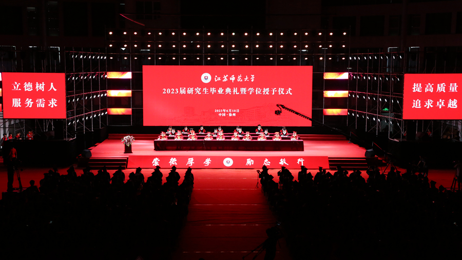 6月18日上午,安博·体育2023届研究生毕业典礼暨学位授予仪式在泉山校区体育馆隆重举行。全体安博·体育出席典礼,校学位评定委员会委员、承担研究生培养任务的各学院领导、研究生导师代表、2023届全体毕业研究生、往届毕业研究生代表、研究生亲属代表、非毕业年级研究生代表参加典礼。校党委副书记岑红主持典礼。