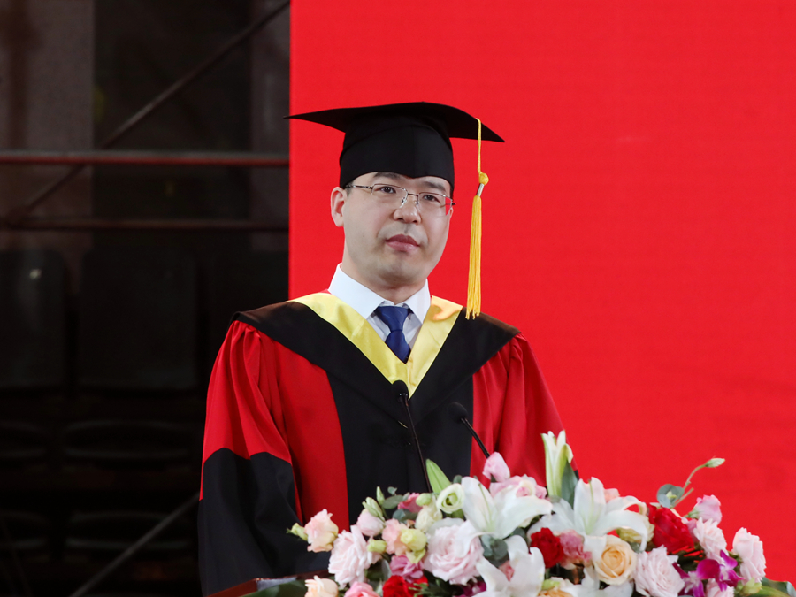 伴随着庄严的国歌声,毕业典礼正式开幕。校长、校学位评定委员会主席周汝光在典礼上致辞,代表学校向圆满完成学业的毕业生们表示热烈祝贺,向辛勤培育、陪伴支持毕业生的老师和家长致以衷心感谢。周汝光以“擦亮青春底色,唱响时代之音”为题,饱含深情地回顾了全体毕业研究生在读期间取得的成绩,充分肯定了大家在疫情防控期间与学校息息相通,甘苦与共,用实际行动关注支持学校事业发展作出的努力。他寄语全体毕业研究生,生逢伟大时代,不仅要学有所成,更要学有所思、学有所用,做持之以恒的自律者、坚韧不拔的奋斗者、矢志不渝的爱国者。周汝光勉励全体毕业研究生要传承好“崇德厚学,励志敏行”的校训,心中有阳光,脚下有力量,笃行致远、惟实励新,不坠青云之志,创造无愧于时代的精彩人生。