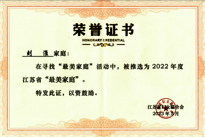 为深入学习党的二十大精神,贯彻落实习近平总书记关于注重家庭家教家风建设重要论述,进一步推进“家家幸福安康工程”落地落实,团结引领广大家庭弘扬社会主义家庭文明新风尚,江苏省妇联近日开展了2022年度江苏省最美家庭推荐、选树工作。经各有关单位组织申报、专家和媒体代表评审、省妇联综合把关,最终揭晓200户2022年度江苏省最美家庭。(中国)官方网站美术学院刘淮家庭上榜,荣获2022年度“江苏省最美家庭”称号。