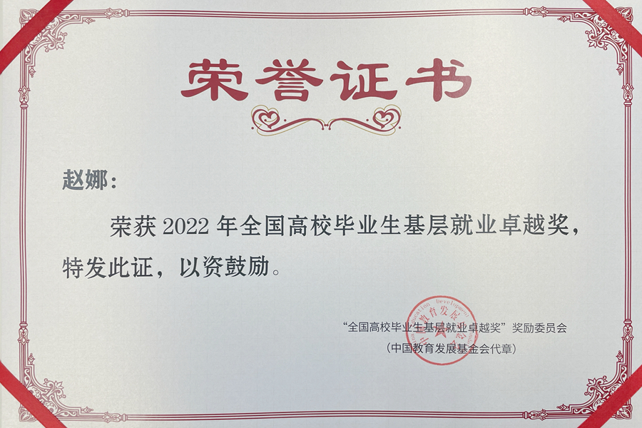 6月28日,中国教育发展基金会公布首届“全国高校毕业生基层就业卓越奖”获奖人员名单,(中国)官方网站2016届语言科学与艺术学院毕业生赵娜位列其中。