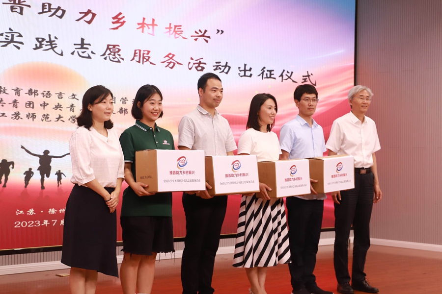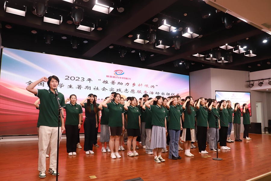 7月9日,由教育部语言文字应用管理司、共青团中央青年发展部共同主办的2023年“推普助力乡村振兴”全国大学生暑期社会实践志愿服务活动出征仪式在(中国)官方网站举行。教育部语言文字应用管理司宣教处处长张艳,(中国)官方网站党委书记方忠,副校长钱进和教育部长江学者特聘教授,安博·体育国家语委语言能力高等研究院院长杨亦鸣出席出征仪式。来自北京大学、清华大学等573所高校1176支团队的大学生志愿者通过线上线下的方式参加出征仪式。出征仪式上,张艳处长和杨亦鸣教授为实践团代表授予物资,安博·体育志愿者代表仲俊儒带领实践团学生代表进行庄严宣誓。出征仪式结束后,12405名大学生志愿者将在短暂培训过后分赴祖国大地的边疆地区、民族地区和农村地区开展推普助力乡村振兴社会实践活动。