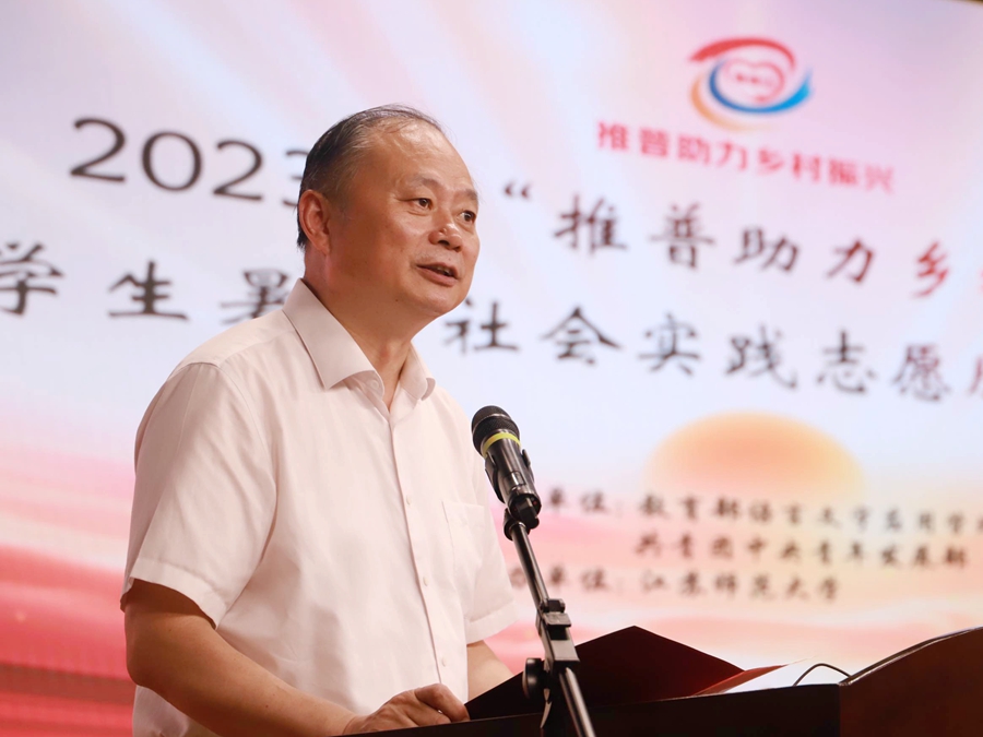 方忠代表学校在出征仪式上致辞,简要介绍了(中国)官方网站在“推普助力乡村振兴”中承担的有关工作和取得的成绩。他希望“推普助力乡村振兴”实践团队的全体志愿者能够勇担时代赋予的重任,不怕苦,不怕累,用自己的所学所长做好实践服务,以实际行动为推进乡村振兴作出贡献。