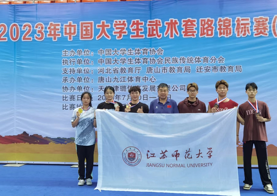 (中国)官方网站选派出由体育学院副院长宋桦任教练,6名(4男、2女)运动员组成的武术队参加丙组的比赛。经过为期四天的激烈争夺,获得2枚金牌、1枚银牌、2枚铜牌、2个第四名、1个第五名、1个第六名的优异成绩,创(中国)官方网站参加全国大学生武术套路锦标赛历史最好成绩。(中国)官方网站武术队发扬吃苦耐劳、团结奋进、顽强拼搏的精神,陈诺同学获得女子丙组自选枪术第一名、自选剑术第二名、双剑第六名;张来彬同学获得男子丙组少林拳第一名和软器械第五名;陈敬果同学获得男子丙组通背拳第三名;虢京城获得男子丙组少林拳第三名;范雅娴同学获得女子丙组自选刀术和双刀双项第四名;范雅娴同学获“体育道德风尚奖运动员”称号;宋桦获“体育道德风尚奖教练员”称号。