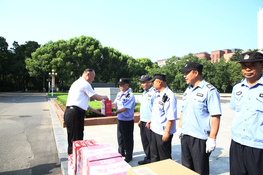 暑期以来,气温居高不下,为保障校园正常运转,有关单位教职工冒高温战酷暑,一直奋战在工作一线。8月5日,校党委书记方忠在校工会负责同志等相关人员的陪同下,看望了慰问坚守一线岗位的教职员工,并送上防暑降温慰问品。