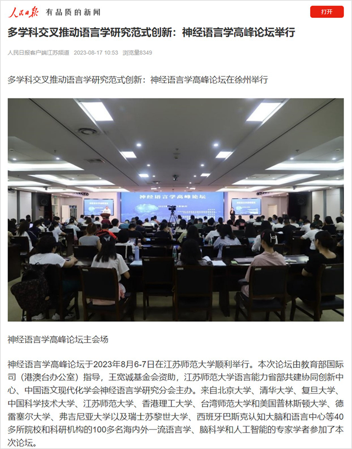 人民日报客户端8月17日报道(中国)官方网站主办的神经语言学高峰论坛,报道内容如下: