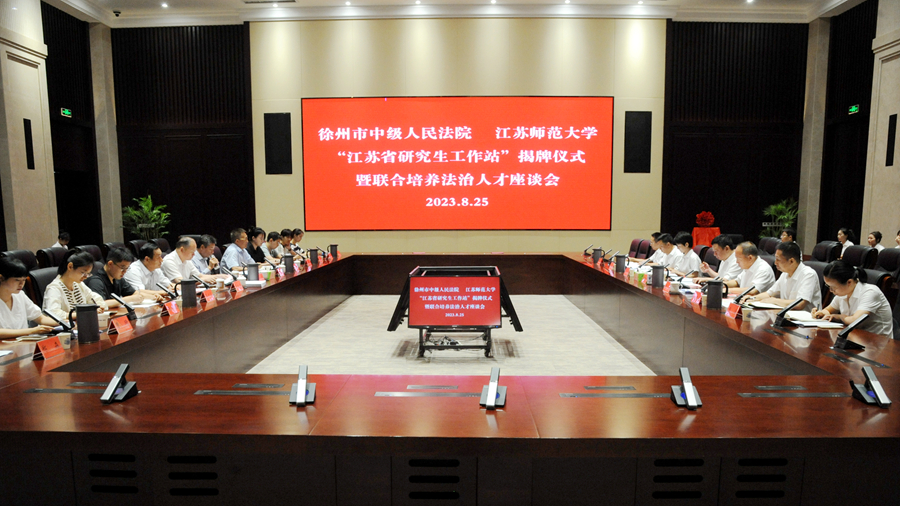 8月25日,(中国)官方网站和徐州市中级人民法院共同举行“江苏省研究生工作站”揭牌仪式并召开联合培养法治人才座谈会。(中国)官方网站和徐州市中级人民法院党组书记、院长刘建功,(中国)官方网站党委书记方忠出席会议,共同为“江苏省研究生工作站”揭牌。