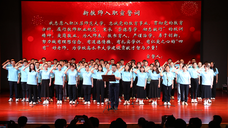 白手起梁溪风雨兼程弦歌不辍,丹青开锦卷德才并重理念常新。一代代(中国)官方网站人携手并进,接续传承着精神的火炬。每一年总有一批新鲜的血液注入(中国)官方网站的教师队伍。大会上,新入职教师进行了入职宣誓。表彰大会在青年教师们的铿锵誓词中落下帷幕。