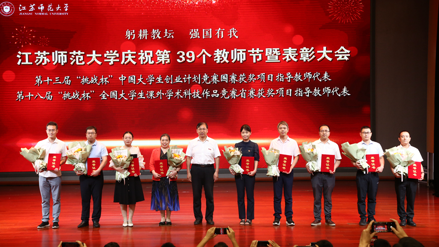 校党委副书记蔡国春为获评工会、妇联系统省市奖项教师代表、“彭城恩师”先进个人颁发证书。