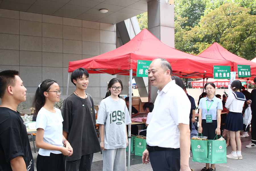 校长周汝光一早就率队到信息化处,通过数字迎新系统查看新生报到情况。他指出,要让数字多跑路,让学生和家长少跑路,要用好信息技术,开展好精准迎新。之后,周汝光来到各学院迎新接待点和学生宿舍,详细了解了报到情况,并与新同学亲切交流了到校后的感触和体会。他希望同学们能尽快转变角色,融入大学生活。