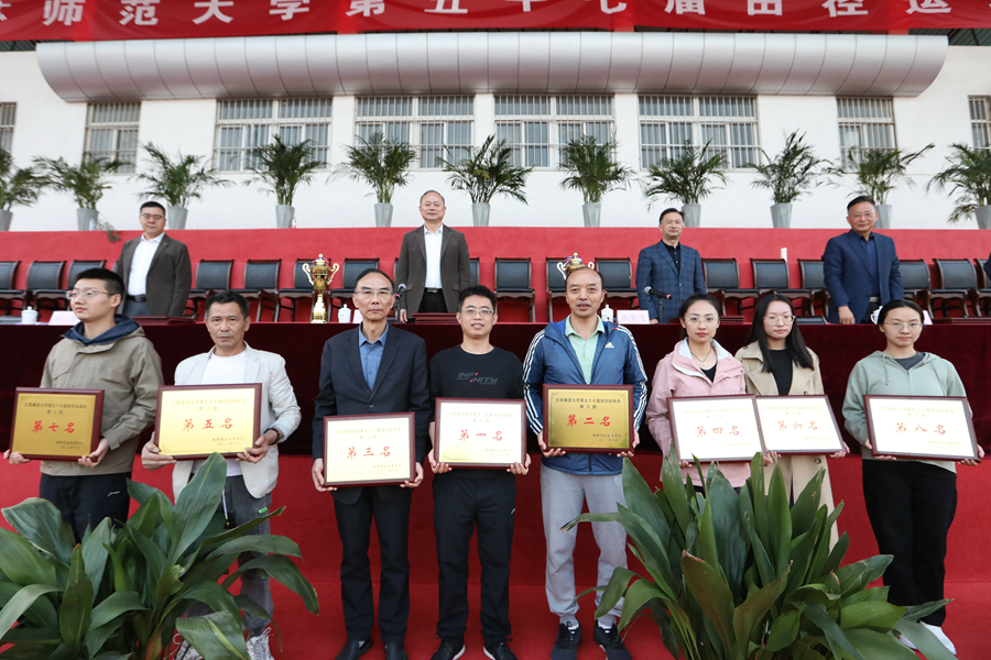 21日下午,在完成全部赛事后,安博·体育第五十七届田径运动会胜利闭幕。有关安博·体育和校体育委员会全体委员出席闭幕式。闭幕式上宣布了比赛结果,并举行了颁奖仪式。敬文书院获得学生组男女团体总分第一名,物理与电子工程学院获得教工组男女团体总分第一名,分别蝉联“流动奖杯”。化学与材料科学学院、敬文书院、教育科学学院(教师教育学院)、物理与电子工程学院、生命科学学院、外国语学院、机电工程学院、商学院等8家单位获得本届田径运动会精神文明奖。教育科学学院(教师教育学院)、音乐学院、体育学院获得本届运动会“体育文化展示”一等奖。