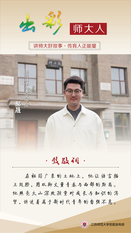 不久前,郝晟因其在推普脱贫攻坚实践中的突出表现被授予第二届江苏省社会实践和志愿服务“十佳研究生”称号。