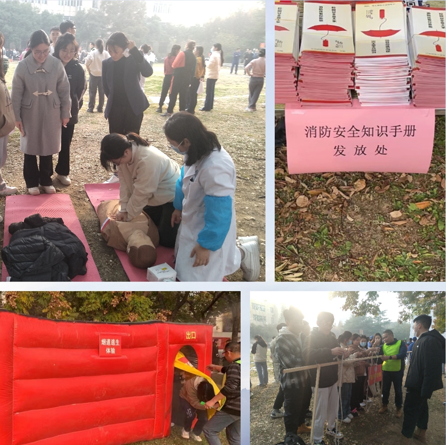 本届消防运动会围绕“预防为主,生命至上”这一主题,在项目涉及上,将知识性、体验性和竞技性有机融合,将消防安全知识和技能实操有机结合。运动会共设有火情报警、火场逃生、抢救伤员、连接水带及油盆灭火五个单项,由师生混合组队,接力完成。赛场上,选手们展现出了出色的消防技能和团队协作精神,使大家共同学习了一堂消防安全公开课。经过激烈角逐后勤集团、文学院、敬文书院、体育学院、智慧教育学院、法学院、教育科学学院、科文学院荣获本届消防运动会前八名。现场还设置了烟道逃生、紧急救护、逃生绳结等体验项目,发放消防安全知识手册300余份,让师生们更加深入地了解消防安全知识。市消防救援支队参会领导充分肯定了此次消防运动会,并就火灾事故预防及突发火灾应急处置等有关知识与技巧,为大家进行了专业讲解与展示。