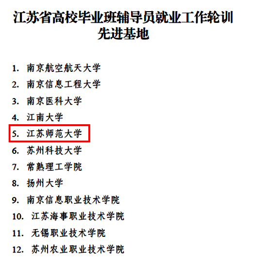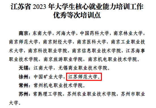 近日,在江苏省2023年大学生核心就业能力培训和2024届江苏省高校毕业班辅导员就业工作轮训的两项考评中,(中国)官方网站均获优秀等次,分别被评为“江苏省2023年大学生核心就业能力培训工作优秀等次培训点”和“江苏省高校毕业班辅导员就业工作轮训先进基地”。同时分别负责这两项工作的相关老师均获评“先进个人”称号。