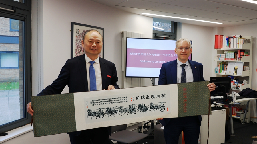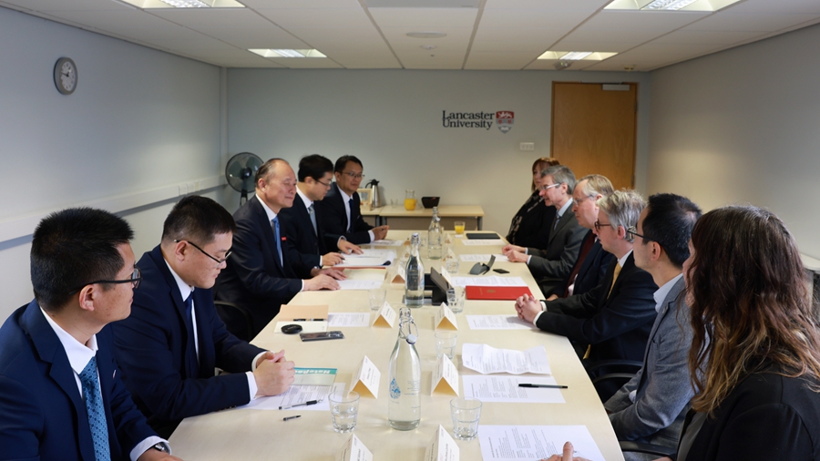 在英国访问期间,访问团首先来到英国兰卡斯特大学,与西蒙•盖常务副校长围绕两校翻译硕士联合培养项目进行了会谈。方忠简要介绍了(中国)官方网站的历史沿革和发展近况,尤其是(中国)官方网站翻译硕士专业授权点的师资和人才培养质量情况,并表示两校翻译硕士联合培养项目有助于提升(中国)官方网站翻译硕士培养质量,促进英语能力和翻译技能发展。西蒙•盖常务副校长对方书记一行表示热烈欢迎,并表示希望在翻译硕士学位点建立长期稳定且成功的合作。