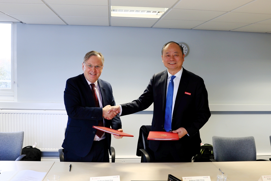 本次会谈结束后,方忠和西蒙•盖共同签署了2+1联合培养翻译硕士合作项目协议。随后,代表团与斯科菲尔德校长,以及工程学院、管理学院和艺术和社会科学学部的部分学科负责人、教师代表进行进了会谈,双方互相介绍了各自学科发展情况及优势研究领域,共同探讨在科研合作、人才联合培养、物理学、计算机科学与技术、材料科学等潜在合作领域,并就两校于明年联合举办“一带一路国际会议”进行了初步探讨。