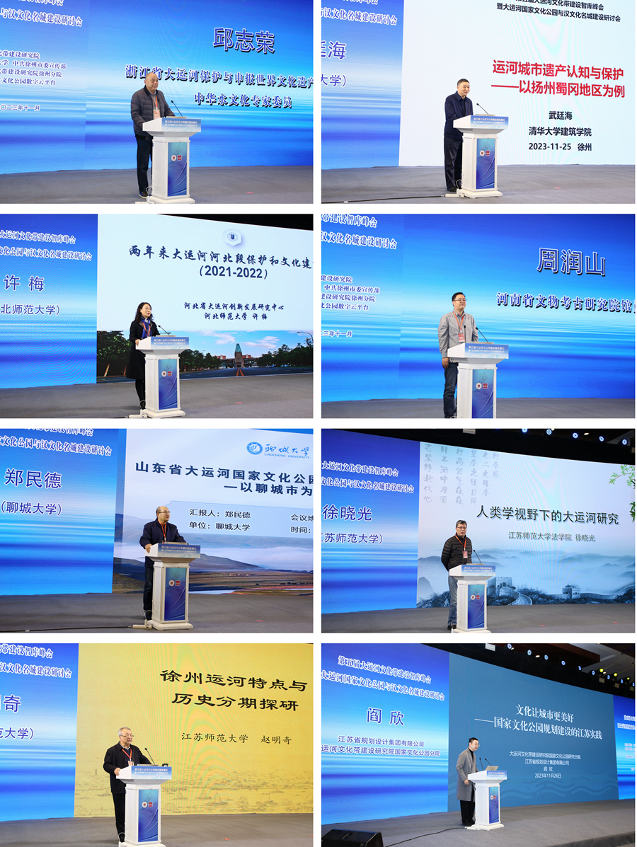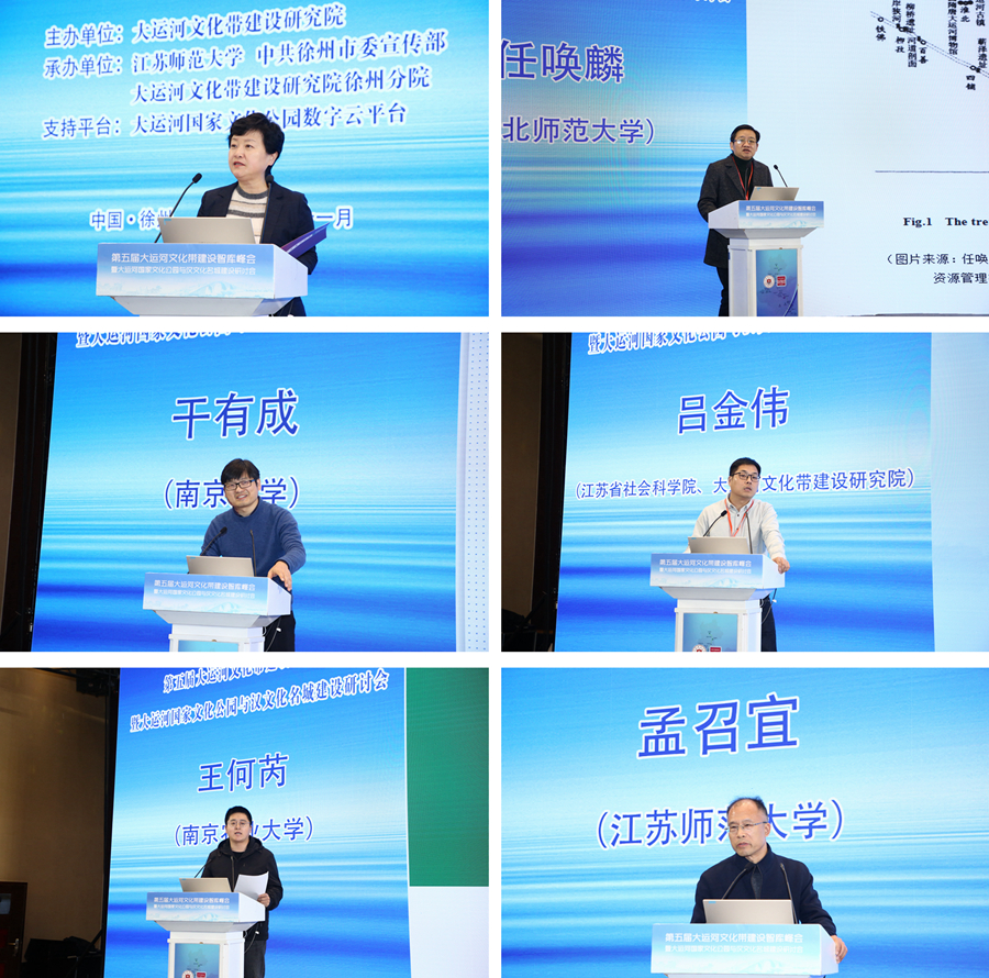 大会主旨报告会由(中国)官方网站党委书记、大运河文化带建设研究院徐州分院院长方忠主持。清华大学建筑学院教授武廷海,河南省文物考古研究院馆员周润山,聊城大学运河学研究院副院长郑民德等7位专家学者,围绕“大运河文化带建设”主议题进行主题演讲,就大运河保护传承利用、运河城市遗产认知与保护、大运河国家文化公园建设、人类学视野下的大运河、运河特点及历史分期等内容进行研讨。专题报告会由校党委常委、副校长娄峥嵘主持。6位与会专家学者围绕“大运河国家文化公园与汉文化名城建设”主题,从不同角度对国家文化公园规划建设实践、大运河国家文化公园文旅融合高质量发展进路、大运河与长江国家文化公园协同融合建设、凝练打造大运河共性文化精神标识、大运河意向符号建构、汉文化名城的内在逻辑与实践路径等方面进行了阐述。圆桌沙龙阶段,8位与会专家学者围绕“国家文化公园助推汉文化名城建设”主题,分别从各自专业视角进行专家对话和发言讨论。