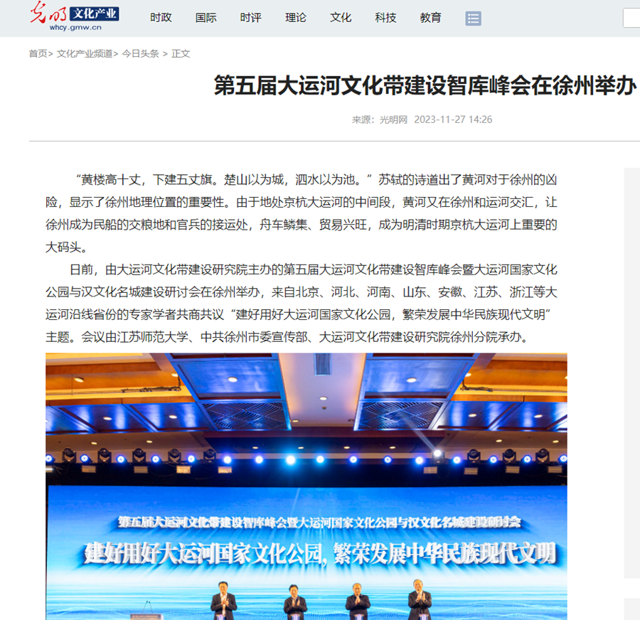 光明网11月27日报道(中国)官方网站承办的第五届大运河文化带建设智库峰会,报道内容如下: