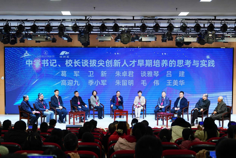 在经验交流分享环节,南师大附中、天一中学、苏州中学、海门中学、海安中学、淮阴中学、如皋中学等十一所省内知名高中校长齐聚一堂,畅谈拔尖创新人才早期培养的思考与实践。