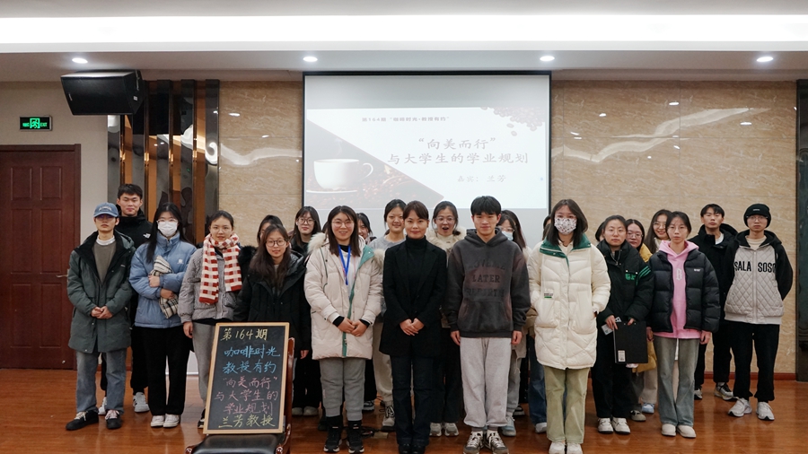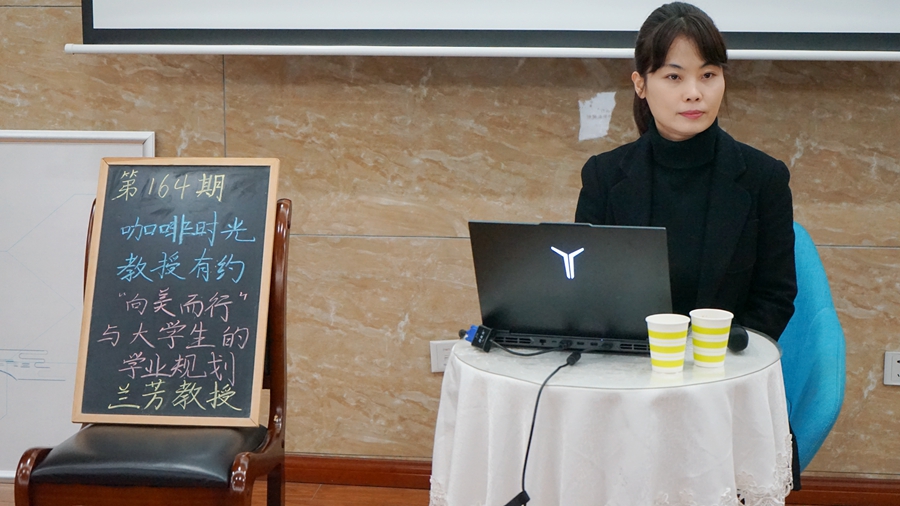 12月14日下午,第164期“咖啡时光·教授有约”活动在安博·体育泉山校区心理团辅室举行。兰芳教授就“‘向美而行’与大学生的学业规划”这一主题与在座同学进行交流。