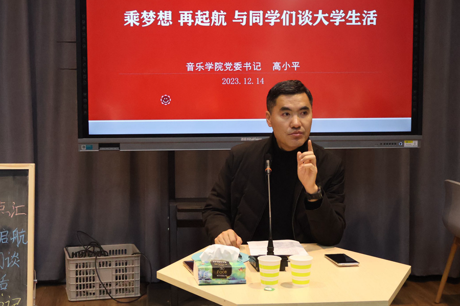 12月14日下午,第30期“餐厅·六点汇”活动在泉山校区园丁餐厅外“六点汇”实践基地举行。音乐学院党委书记高小平以“乘梦想,再起航——与同学们谈大学生活”为主题与在场同学进行了交流。
